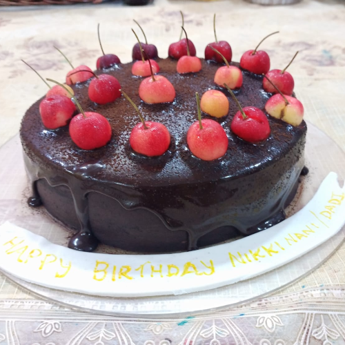Chocolate Truffle cake with selective topping options - KitKat, Nutella, Nutties, Gems, M&M, Fresh Cherries will be extra.